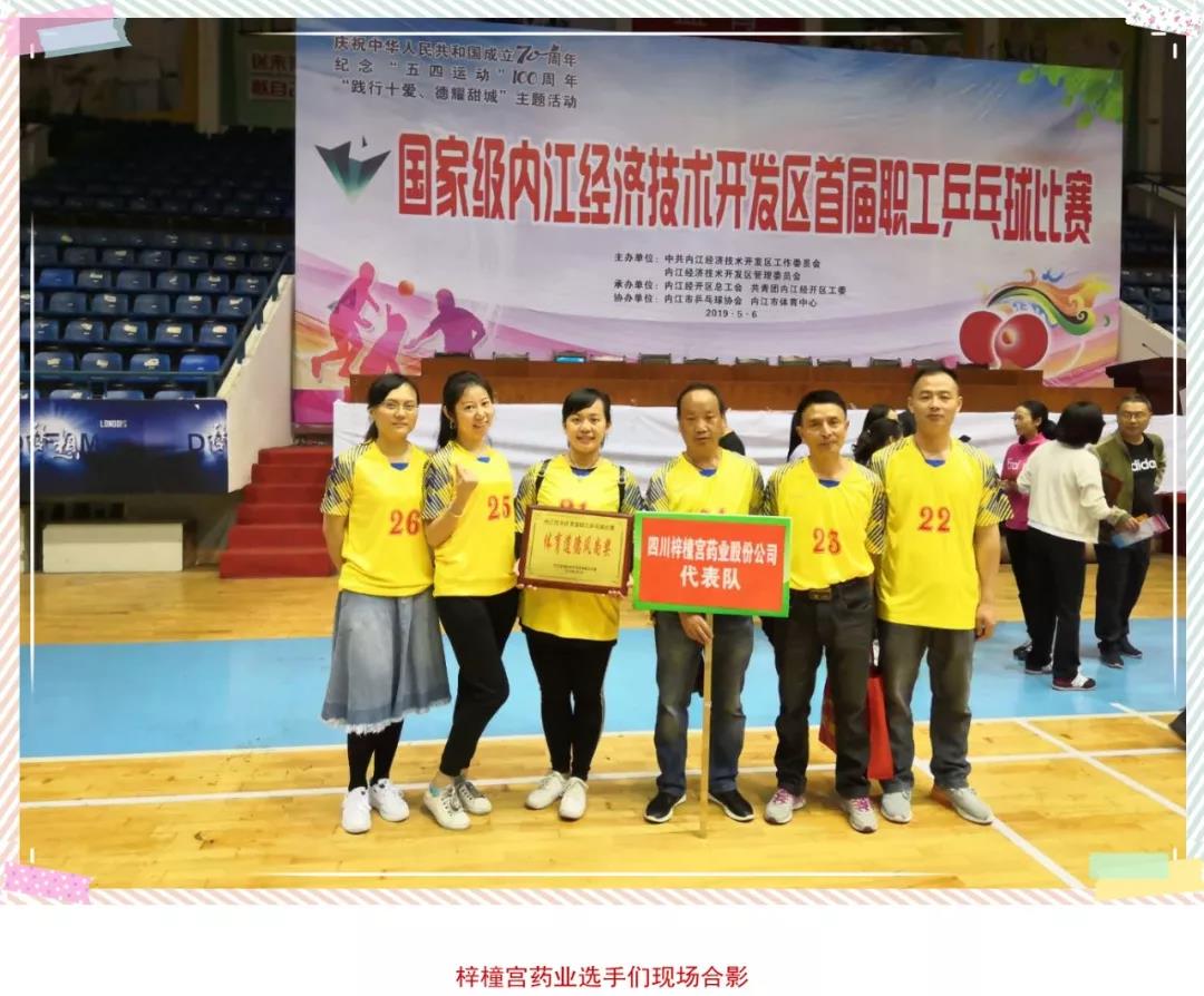 07 19-05“增強(qiáng)體質(zhì),促進(jìn)交流!” 5月6日,由經(jīng)開區(qū)總工會(huì)和團(tuán)工委主辦,市乒乓球協(xié)會(huì)承辦,市體育中心協(xié)辦的內(nèi)江經(jīng)開區(qū)首屆職工乒乓球比賽在梅家山體育館隆重開幕,本屆乒乓球賽共有24支隊(duì)伍220余名職工參加比賽。梓橦宮藥業(yè)的職工積極參與,展示風(fēng)采。