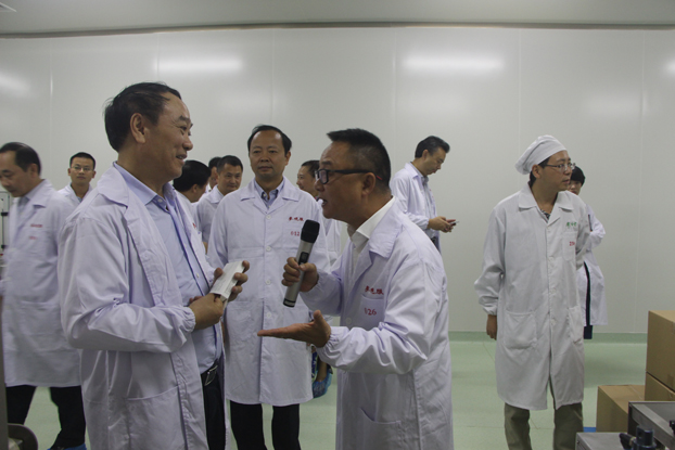 24 16-066月23日上午,四川省食品藥品監(jiān)督管理局羅文全副局長一行在市局陳三局長和內(nèi)江市經(jīng)濟技術開發(fā)區(qū)蘇倫副主任的陪同下蒞臨四川梓橦宮藥業(yè)股份有限公司調(diào)研。
